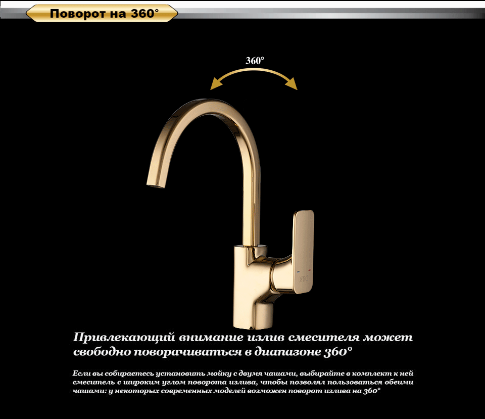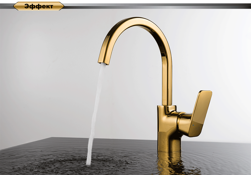 Строгие черты в богатом золотом цвете подчеркивают индивидуальность каждой кухни. Ручка и излив правильно подобраны по размеру, для удобной повседневной эксплуатации на долгие годы.